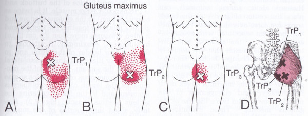 This muscle is the one that most shapes your buttocks, and is very important for activities such as getting out of a chair or walking up stairs. Trigger points in gluteus maximus often cause pain while doing these movements.