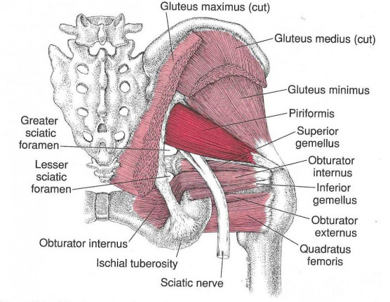 These sit deep beneath the gluteal muscles and can cause deep hip and buttock pain. The piriformis muscle is in close contact with the sciatic nerve, so tightness can press on the nerve causing sciatic pain. This is known as piriformis syndrome.