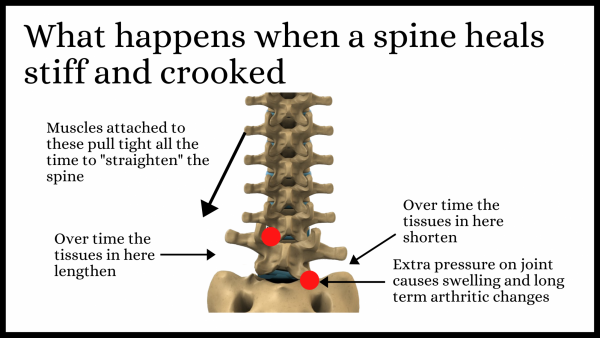 Chiropractic adjustments often give instantaneous and dramatic relief. However, the abnormal spinal function will have caused changes that make it impossible for the spine to just return to normal straight away. You need a correction program to help reverse these changes over time. The following are examples of these changes.