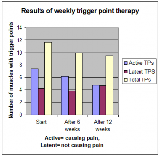 While the 12 week trial discussed above showed that typical courses of therapy will not eliminate trigger points they did manage to diminish the trigger points and eliminate some. This tells us that treatments will reduce trigger points and eliminate them over time. The main issue is that the therapy must be continued for long after the pain has gone. If using professional services for all this will be totally impractical and not affordable for most. Because of this our solution section gives therapies you can easily do yourself at home.